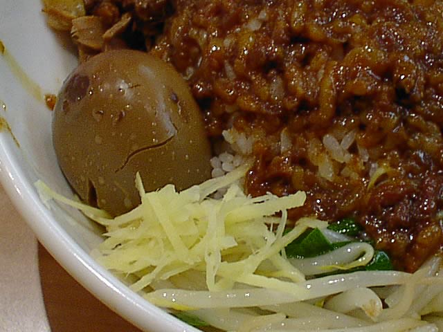昨年、台北で他店の魯肉飯と食べ比べてみてわかったのですが、ひげちょうの魯肉飯は肉が細かく切ってあるのと、とろとろのゼラチン質の部分がたっぷりで食感がやわらかく、味付けもまろやかで調和がとれているのが特徴です。魯肉飯を食べられるのは屋台や小さな店がほとんどの中、ひげちょうは店舗も大きくチェーン展開していて、魯肉飯のトップブランドであることは確かです。日本に魯肉飯を持ち込むのにひげちょうを選んだのは正解だとは思うのですが、ひげちょうの魯肉飯って見た目が悪いですよね。僕は最初見たときちょっと気持ち悪いなって思いました。食べれば美味しいのですからひげちょうに罪はないのですが、見た目でだいぶ損しているんじゃないかな。それにしても日本のひげちょうは本店の味をよく再現していて偉いです。日本と台湾では食材の味が違うので鶏肉飯は一度台湾で食べてしまうと日本のは物足りなく感じますが、魯肉飯は十分美味しいです。どうしても八角の香りは弱いように思いますが、本場と同じ強さにしたら多くの日本人は受け入れられないでしょうから、これも仕方がないと思います。(め)