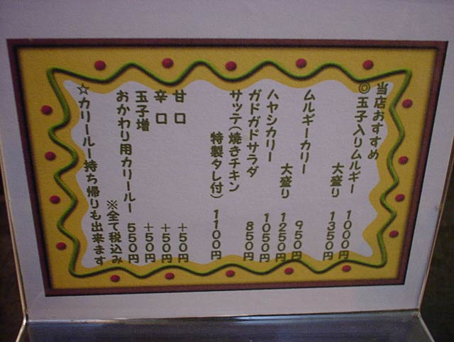 2004/02/28: ムルギーのメニュー