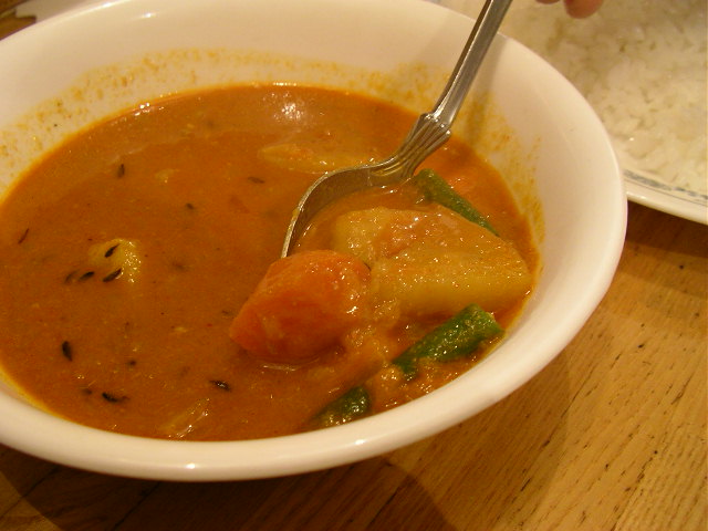 - 一口食べさせてもらったけど、クミンの香りがとてもよいカレーでした。