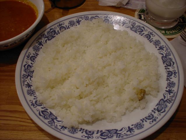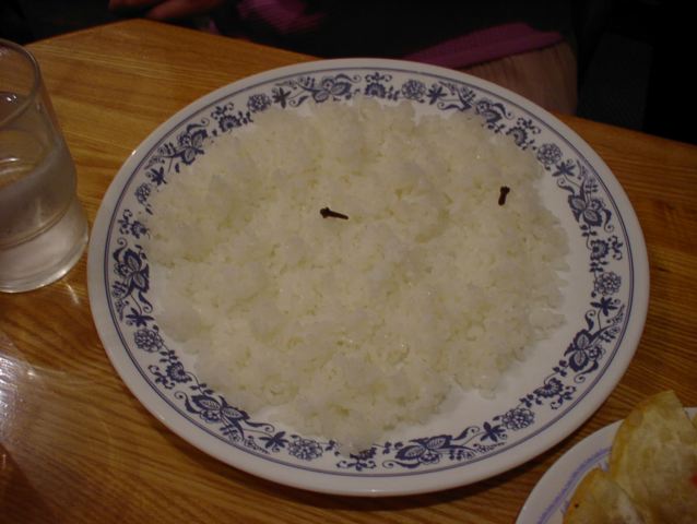 - ライスは、スパイス(クローブやカルダモン)を入れて炊き込んだ、夢屋(そしてハヌマーン)特製のもので、これがまたカレーと非常によく合います。(び)