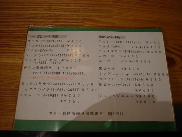 2004/3/13: 夢屋のメニュー