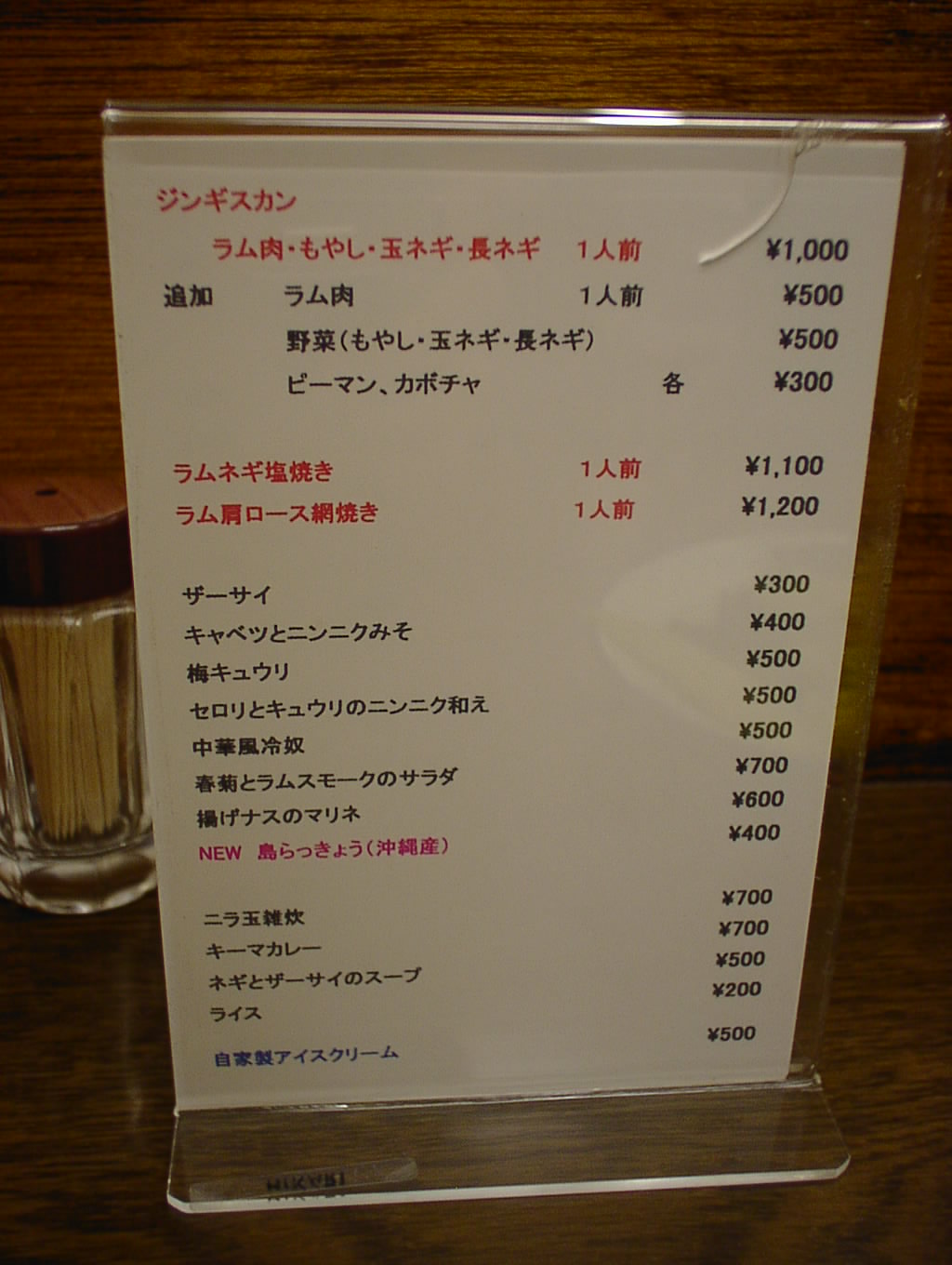 2004/4/3(#0755):中目黒のジンギスカン食堂、まえだや