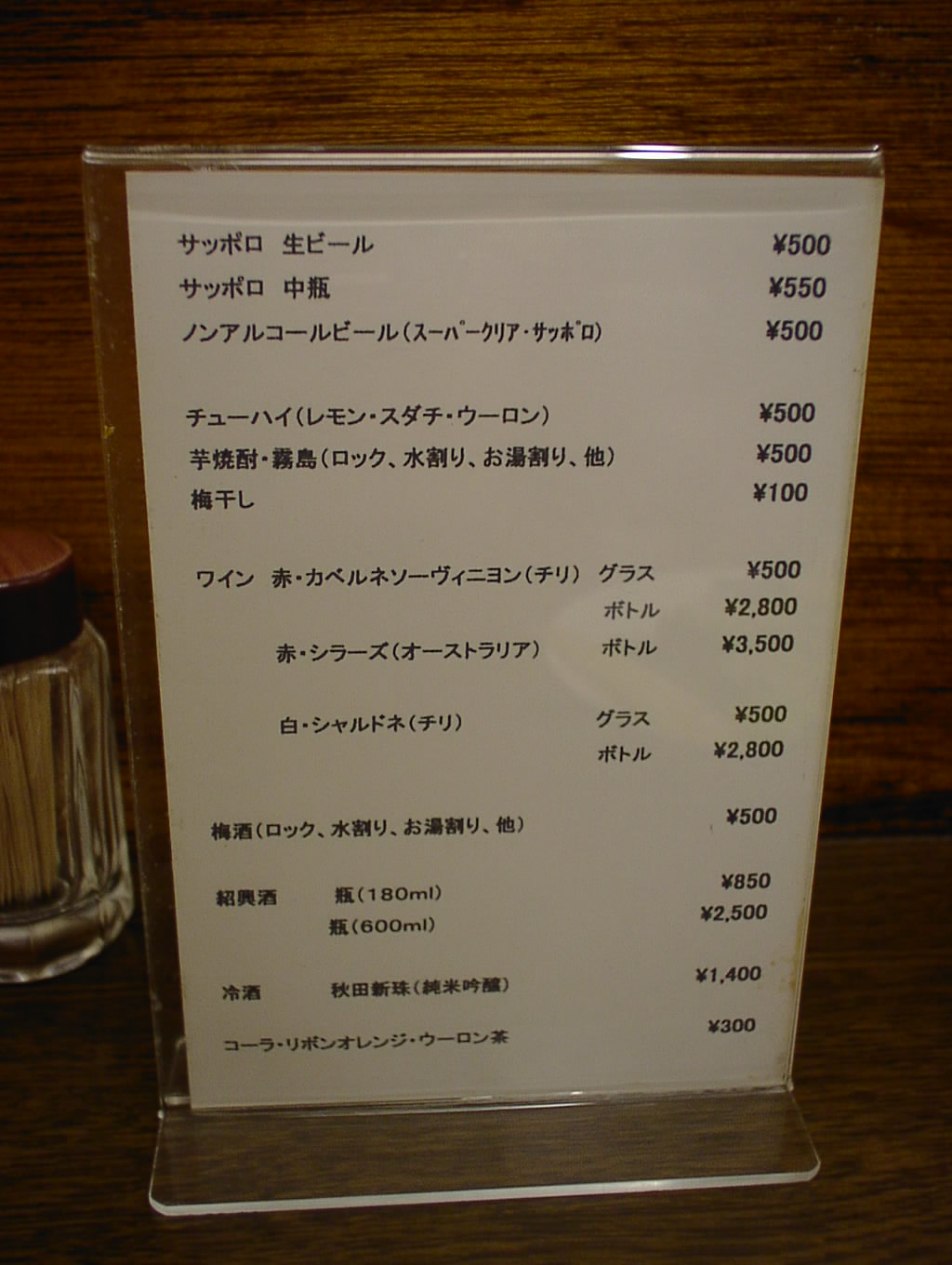 (註:メニューの表記でおかしな点があると感じる人もいるかと思いますが、原則として表記はお店のメニューの通りにしています。明らかに間違っていると思われるものも、そのままにしてあります)