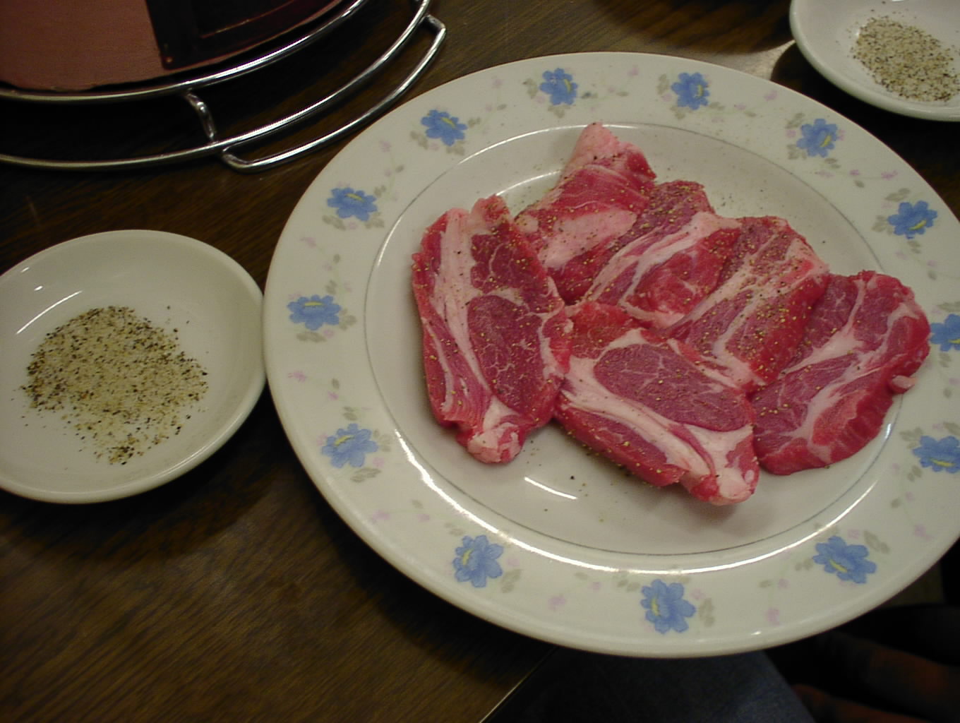 - ラム肩ロースに影響されてジンギスカンも塩胡椒で食べてみました。けっこういけます。ロースよりは脂が少ない感じ。(い)