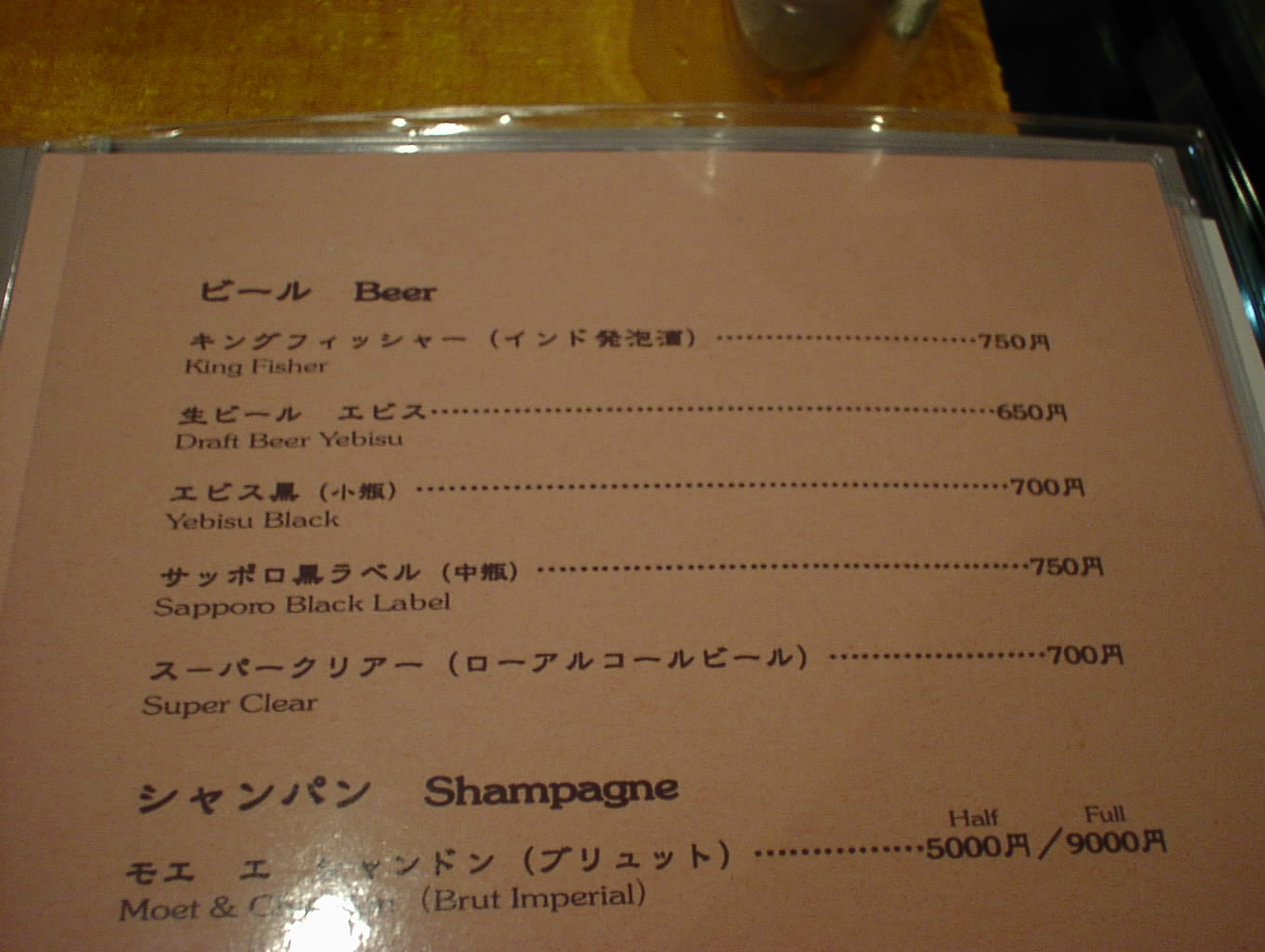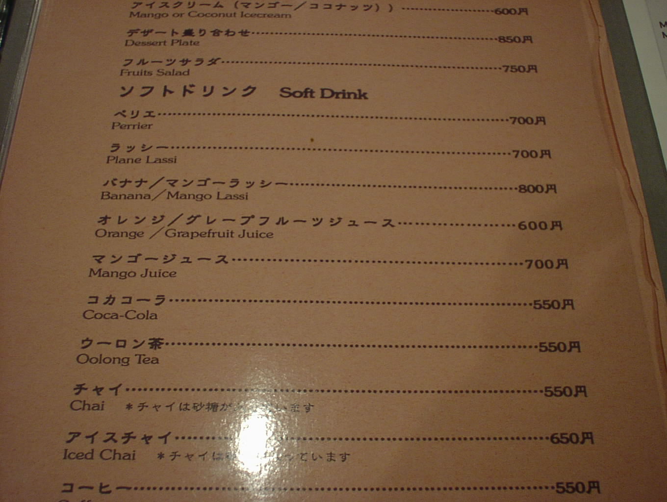 2004/5/8の飲物メニュー