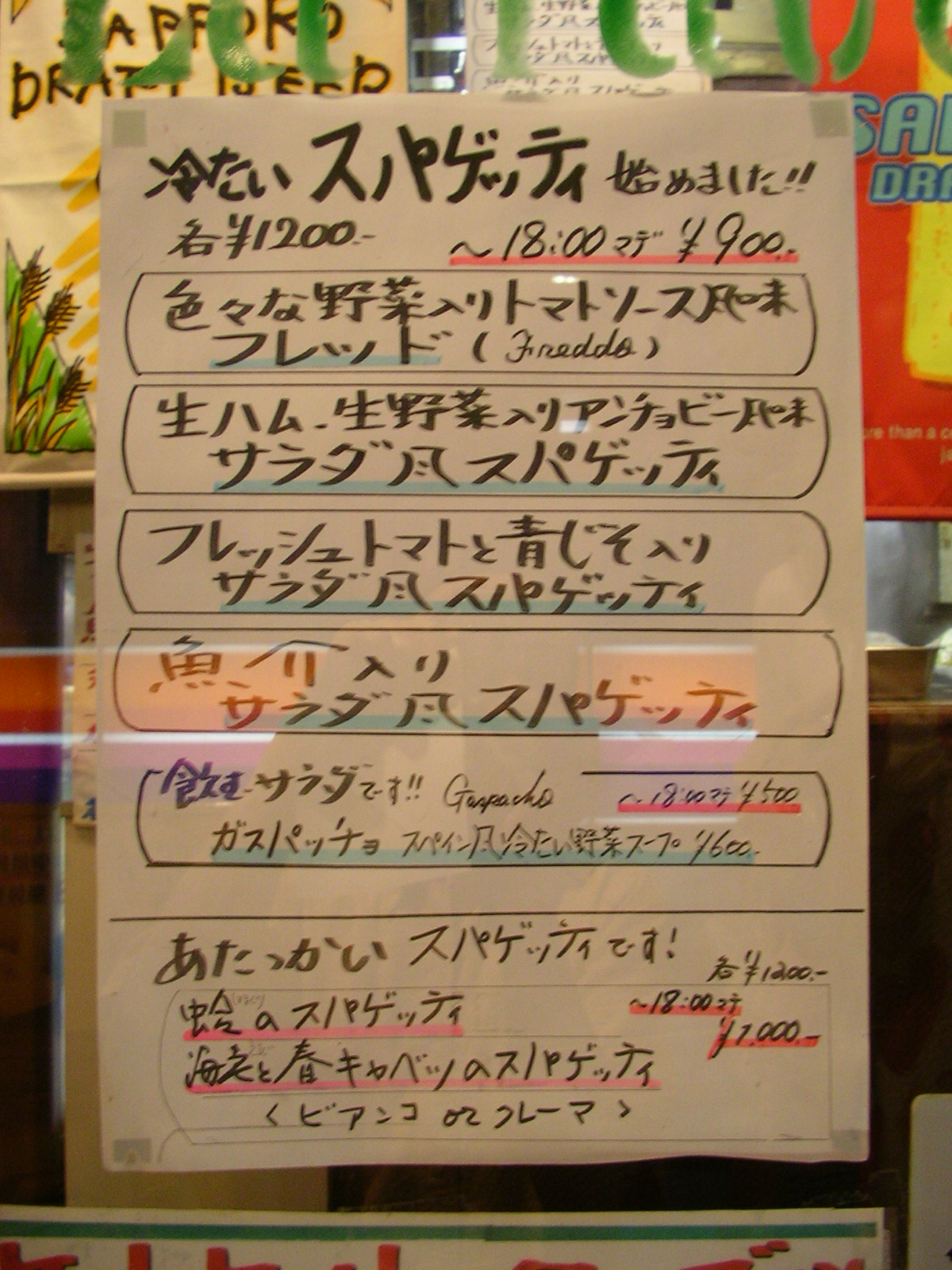 - 今年のタベルナは、夏季限定の冷製パスタが、いつものフレッドの他に3種類、全部で4種類あります。そのうちの1つがこれです。