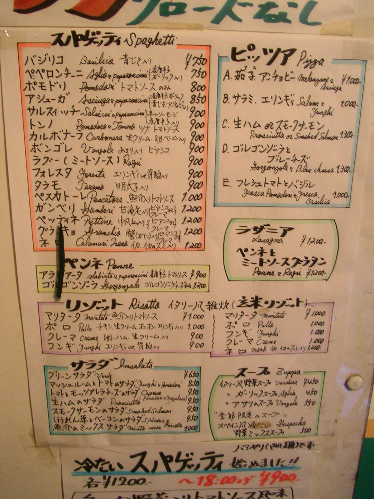 (註:メニューの表記でおかしな点があると感じる人もいるかと思いますが、原則として表記はお店のメニューの通りにしています。明らかに間違っていると思われるものも、そのままにしてあります)