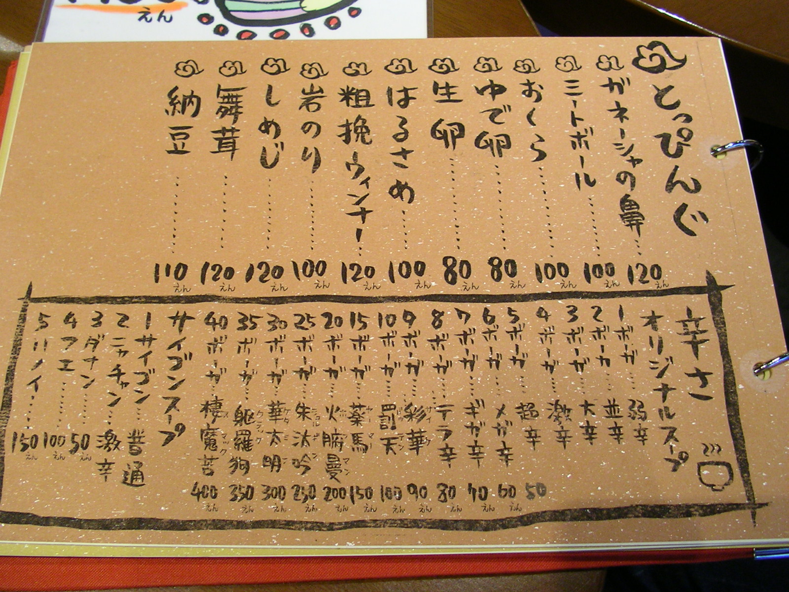 (註:メニューの表記でおかしな点があると感じる人もいるかと思いますが、原則として表記はお店のメニューの通りにしています。明らかに間違っていると思われるものも、そのままにしてあります)