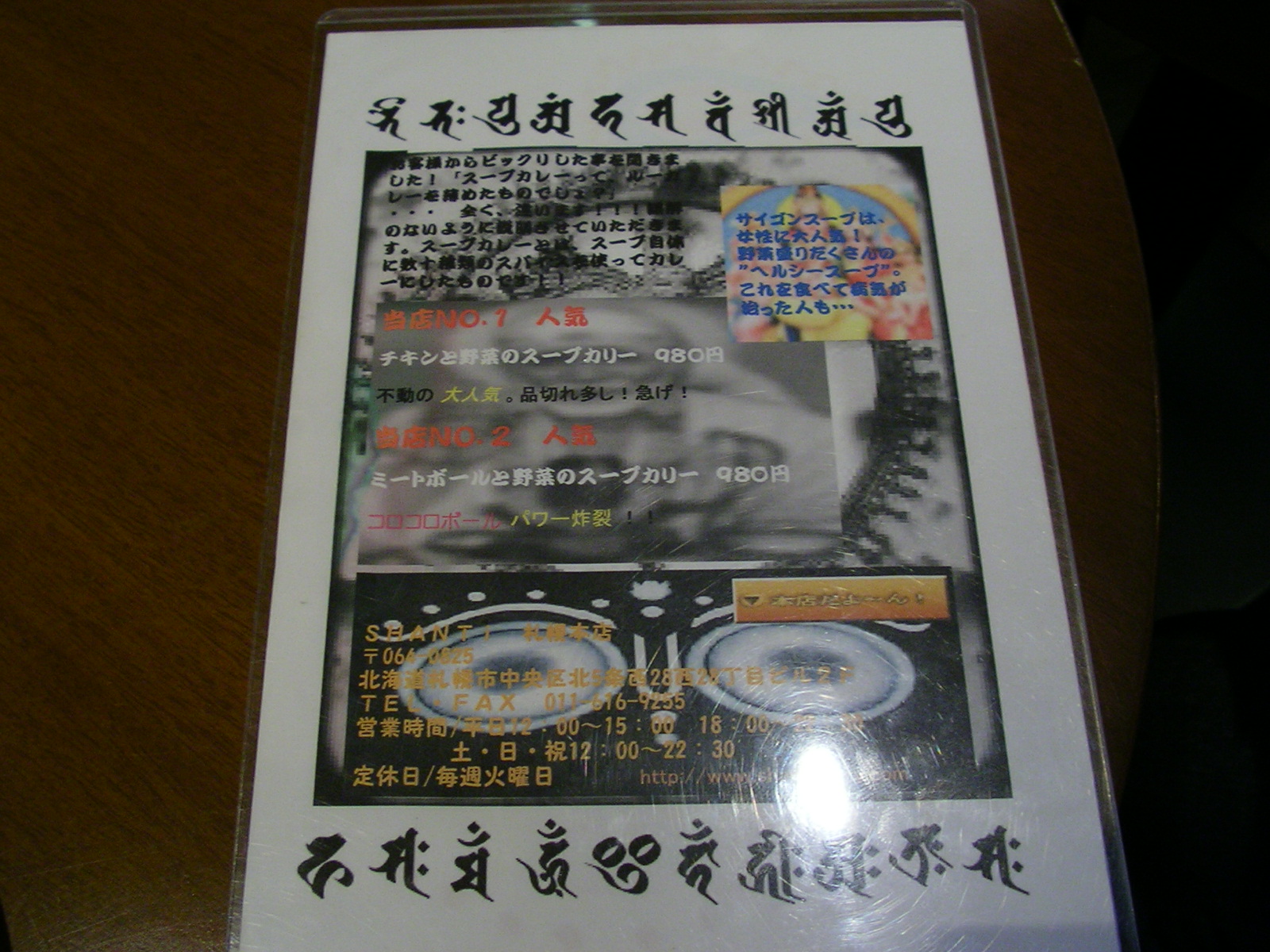 王様のブランチで紹介された直後だったらしく、チキンが全て売り切れで、午後7時半くらいには、スープカレー自体が全て売り切れになっていました。