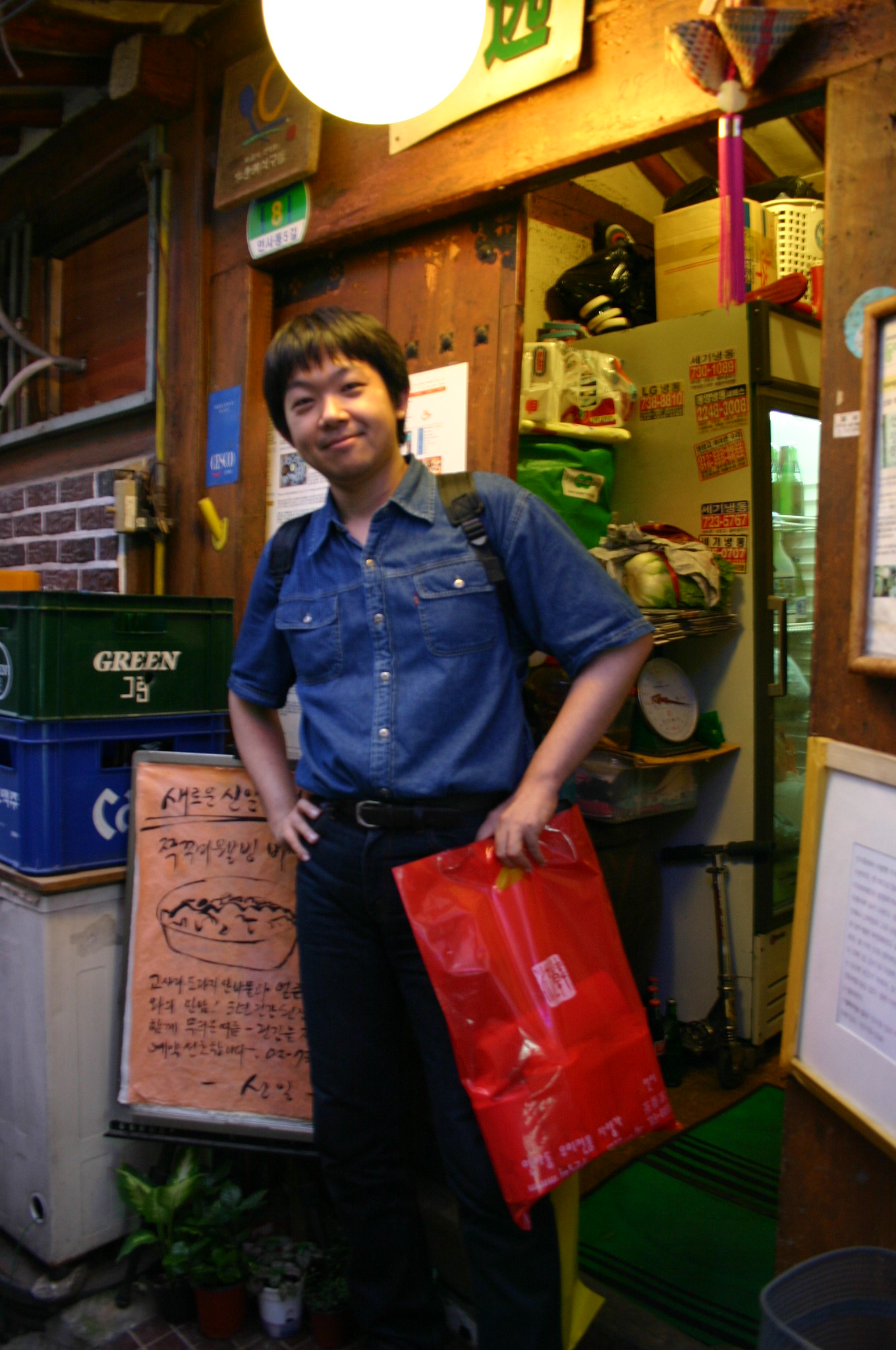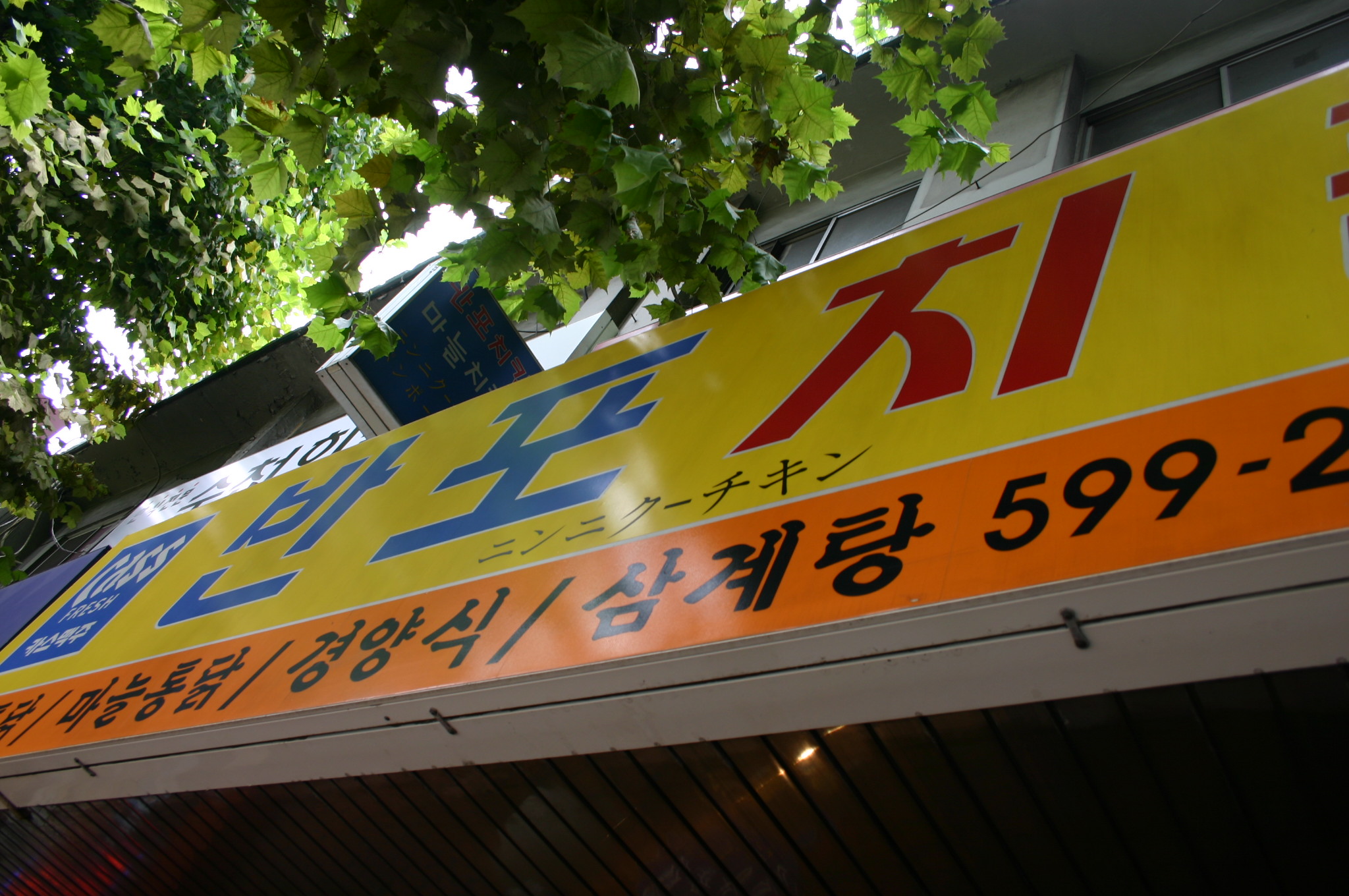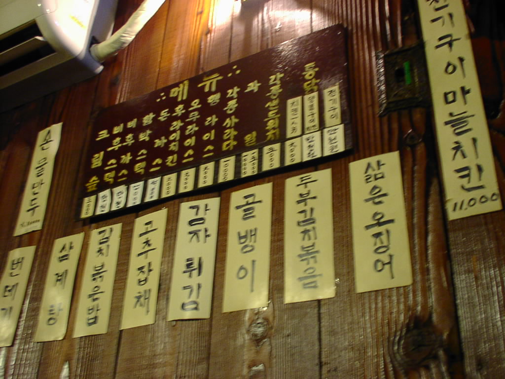 チキン屋は「バンポチキン」ですね。個人的には、ここのチキンよりアプクジョンにある辛いチキン屋(青唐辛子が衣にまざってる!)のほうが好きです。キムチポックンパは汁っぽくないのでおいしかったです。あとSabrinaさんに教えてもらった新村のチキン屋もなかなかうまかった。(s)