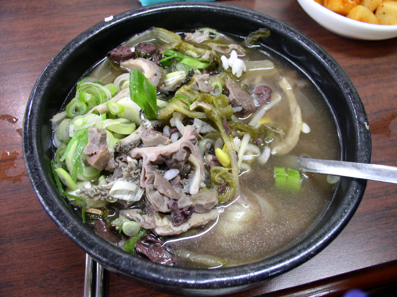 新逸食堂は全羅道テイストの発酵した塩辛く苦くすっぱく複雑な味が特徴的です。韓国料理の真髄の一つといえましょう。でもかなり食べなれた人でないと受け付けないみたい。韓国人でもダメな人はダメですね。(s)