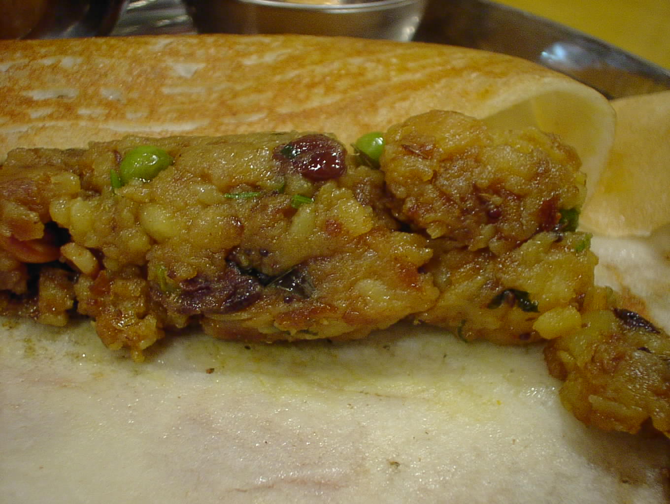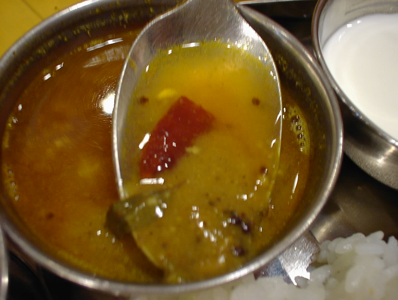 ここはチャトニが優れています。ココナッツがフレッシュなのでしょう。とても良い香りとコクがあります。また、どの品もマスタードシードや豆類が効いています。サンバルも本場の味ですね。インドの風景がよみがえってきます。