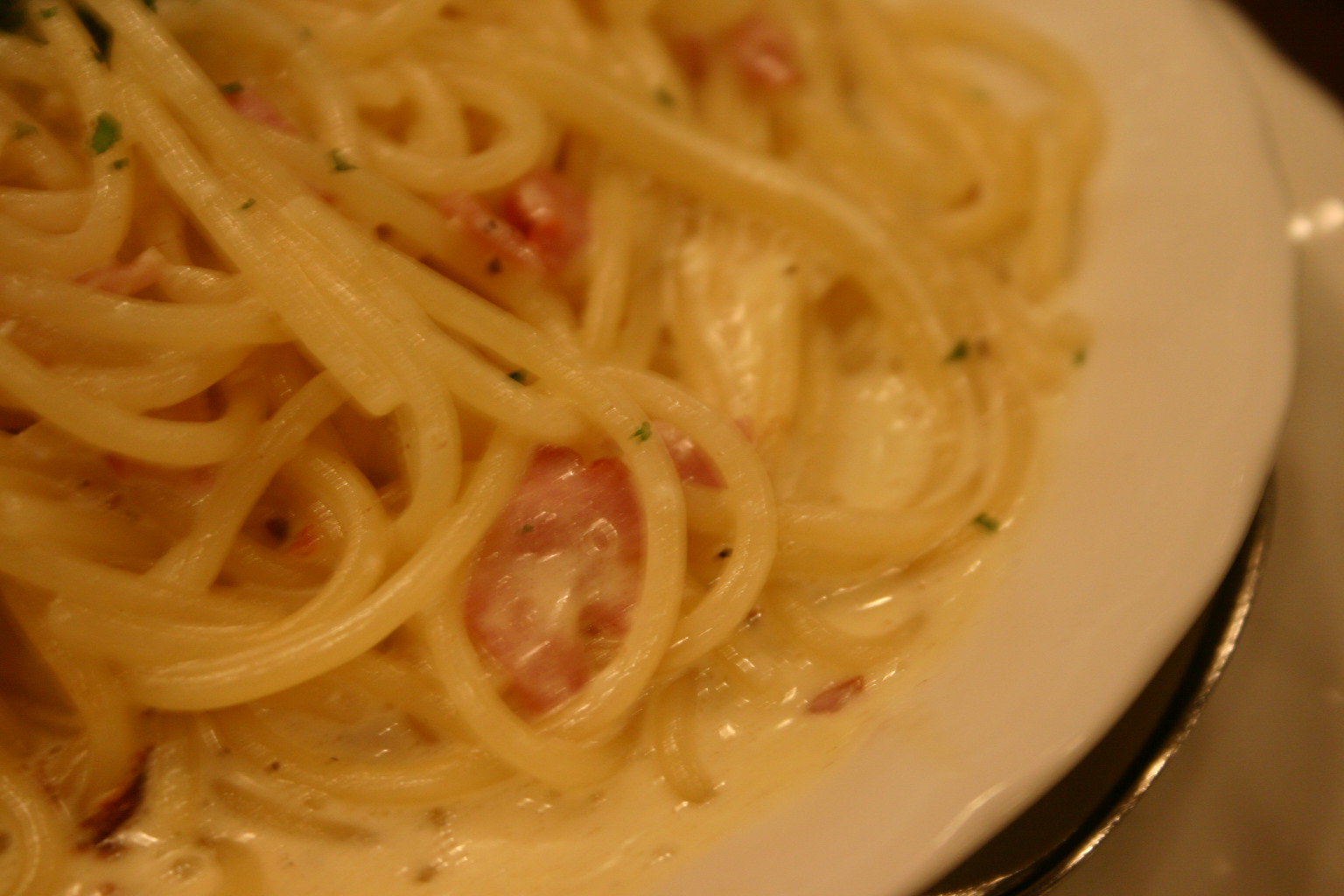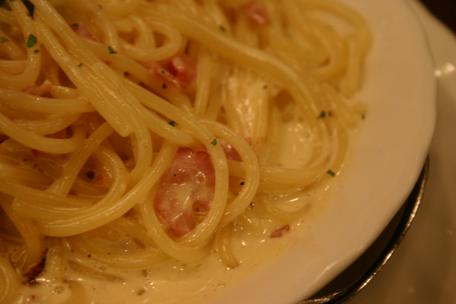 - 今日のカルボナーラはさらさら系(しゃぶしゃぶ系とまではいかない)でした。